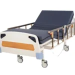 2 elektrik motoru ile pozisyonu ayarlanabilen, el kumandası ile hareket eden, abs başlıklı hasta karyolası